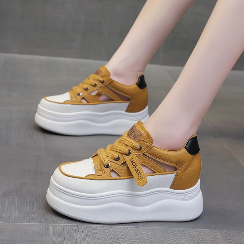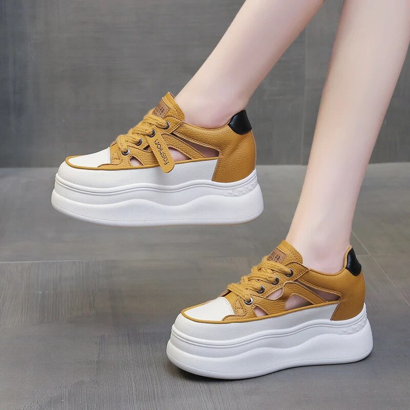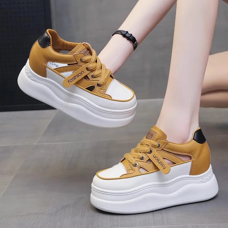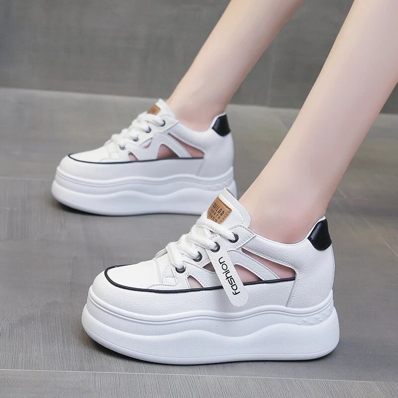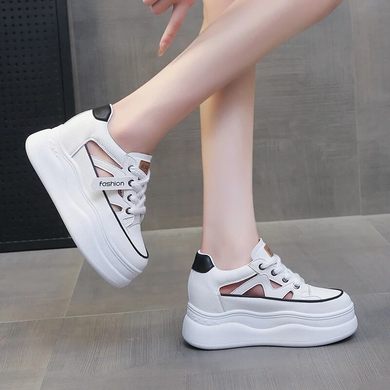 8CM New Chunky Tennis Sneakers For Women Shoes Fashion Hollow Breathable Sandal Lightwight Running Shoes Ladies Platform Shoes