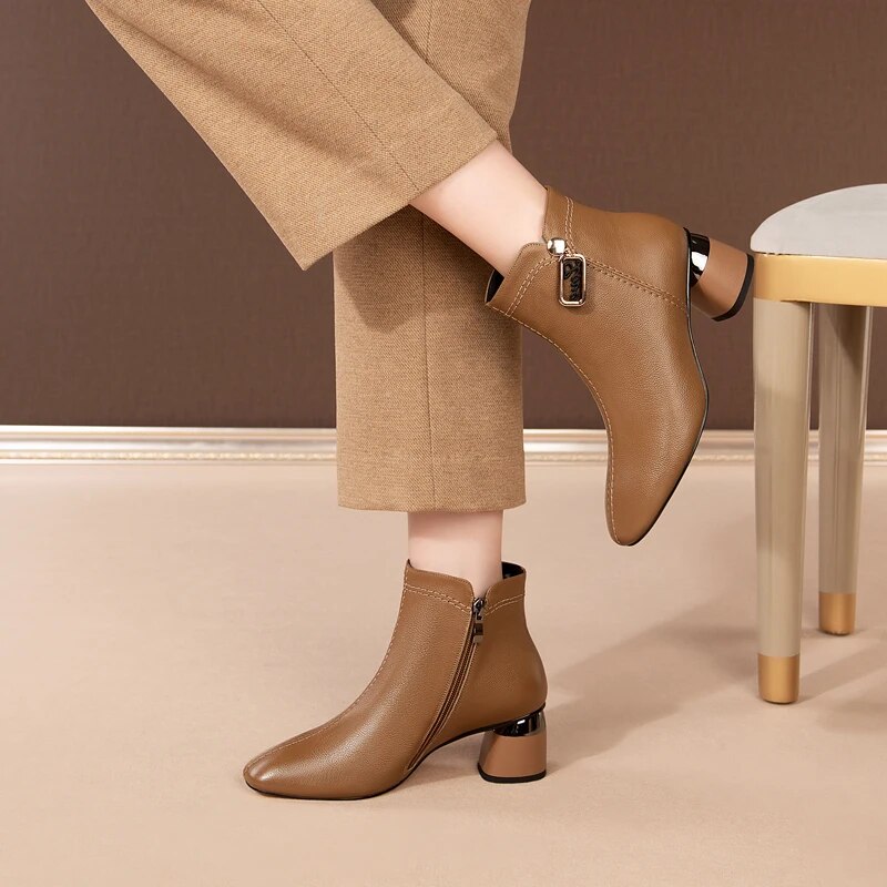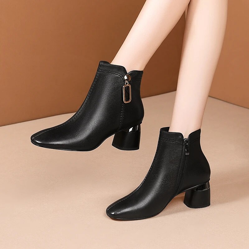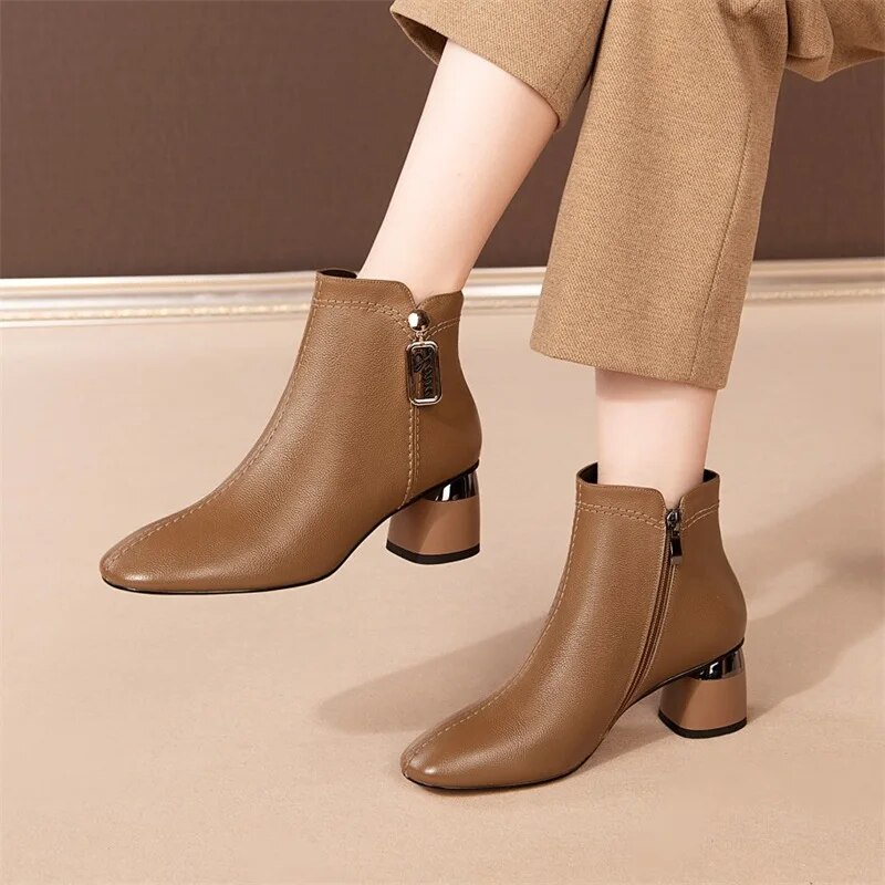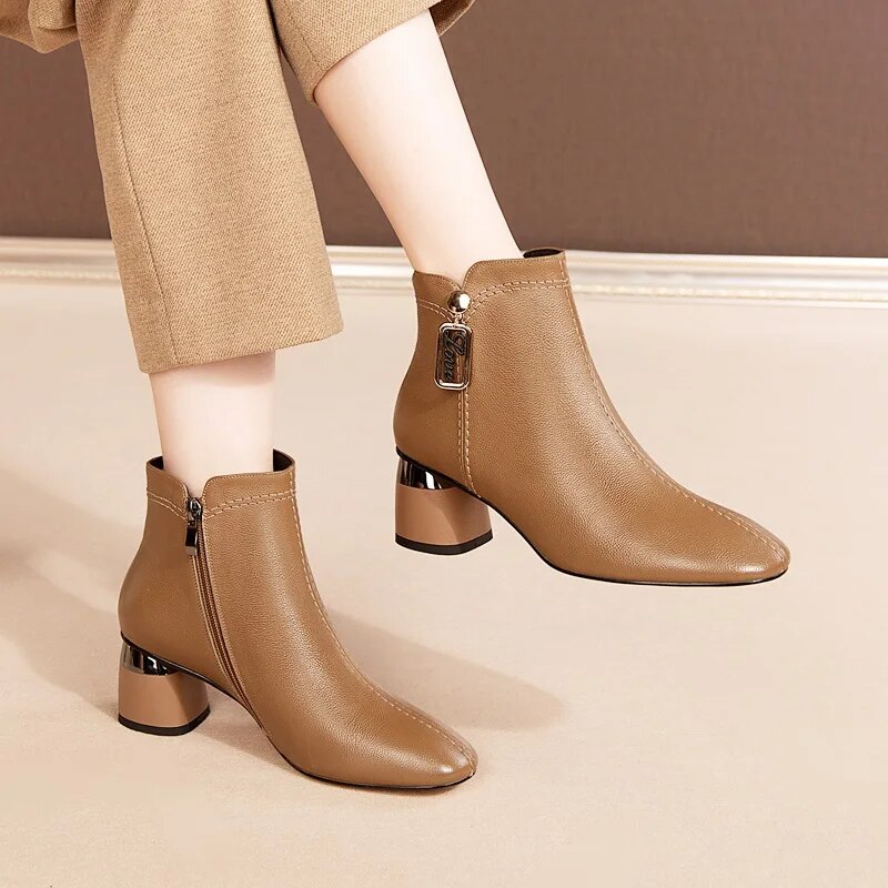 New Autumn and Winter 6cm Korean Version High-heeled Ankle Boot Woman Plus Velvet Short Women Boots Metal Decoration